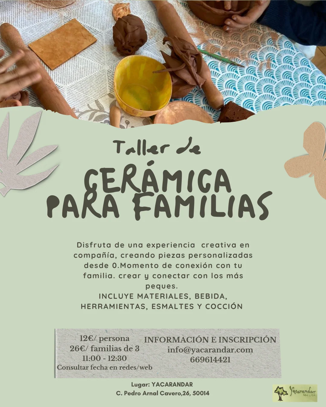 Talleres de cerámica en familia. Crea tus piezas con los más peques. Disfruta de una mañana en conexión, creatividad, exploración.