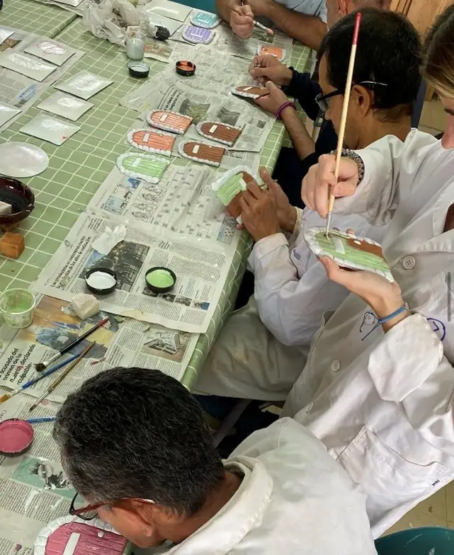 Durante unas horas creamos piezas únicas, aprendemos juntos, y trabajamos factores transversales como la autoestima, la confianza en nosotros mismos, el trabajo en equipo, expresión de nuestros sentimientos. Ofrecemos un espacio accesible y una mirada de no juicio, donde las personas puedan sentirse acompañadas.