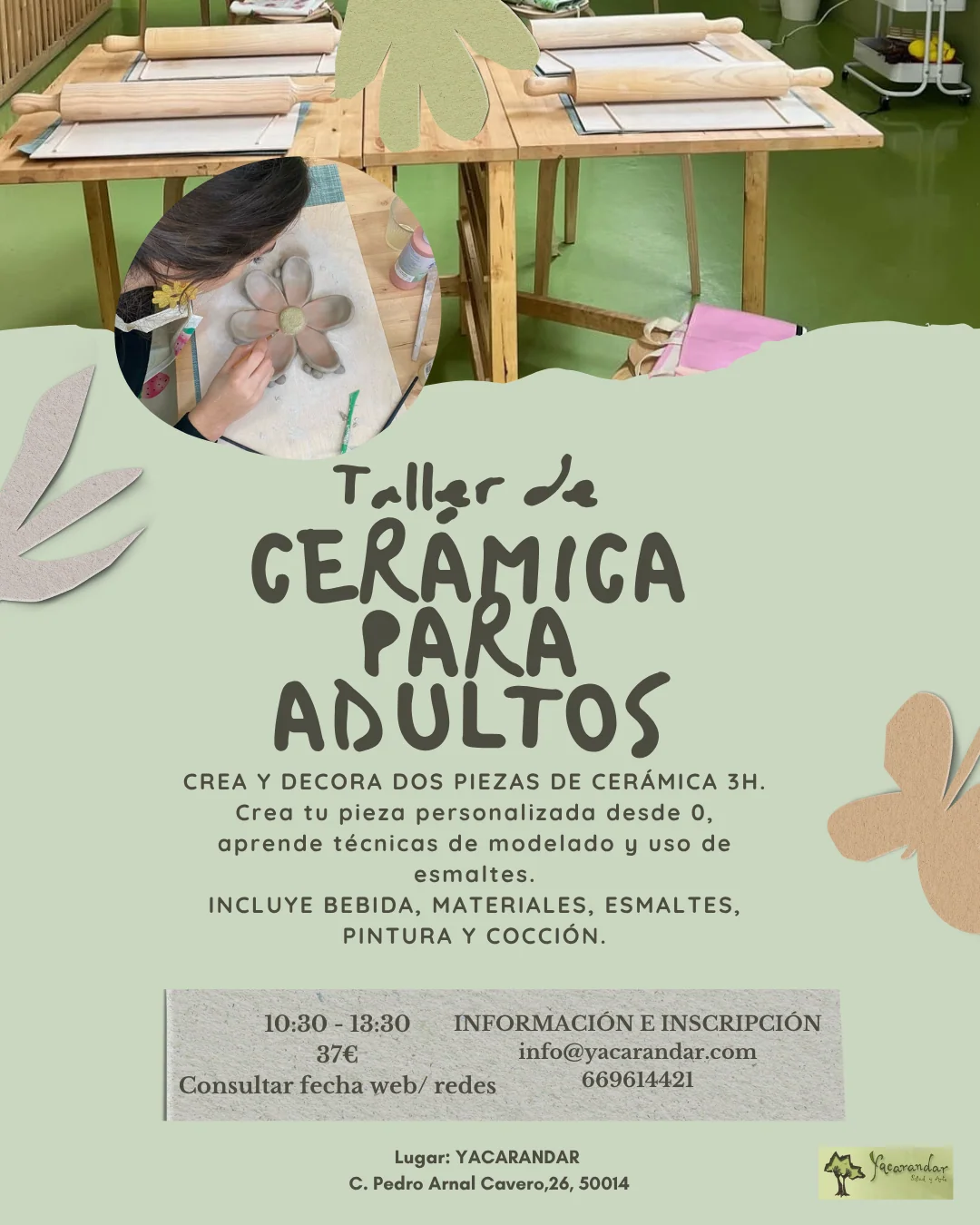 Aprenderás técnicas de modelado, uso de esmaltes y pinturas. Incluye bebida, materiales, esmaltes, pinturas y cocción.