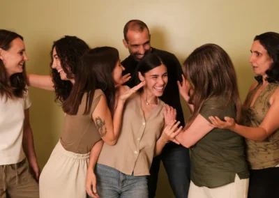 Mi formación se ha nutrido de distintas vertientes relacionadas con el juego y todo lo que este nos aporta como motor de aprendizaje, exploración y placer. También me interesa especialmente el papel del cuerpo en el acompañamiento emocional, reconociéndolo como un lugar de expresión, memoria y encuentro.